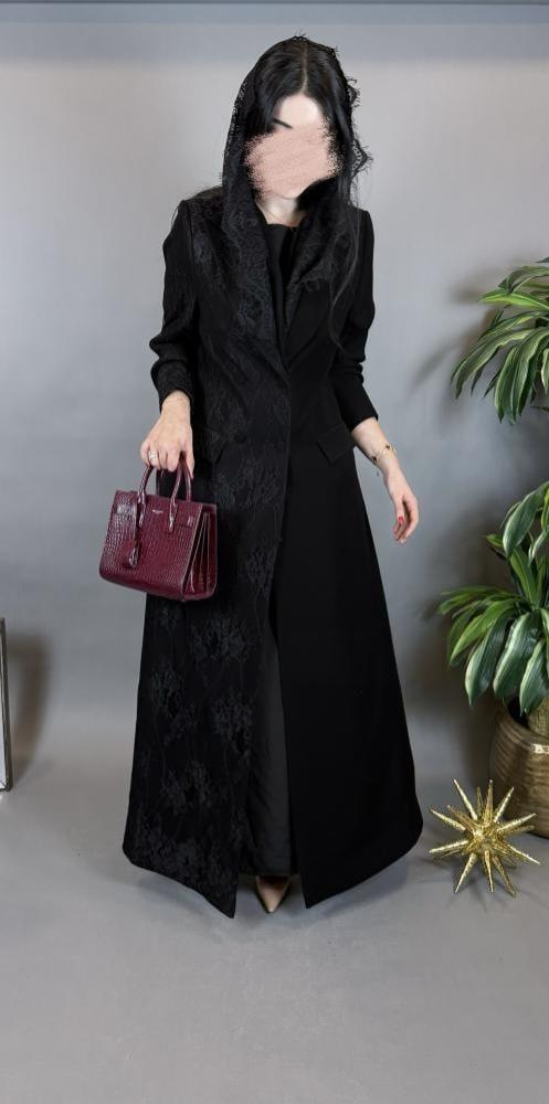 بليزر كريب مع تدخيله دانتيل فرنسي، الطرحه كوري نصف دانتيل