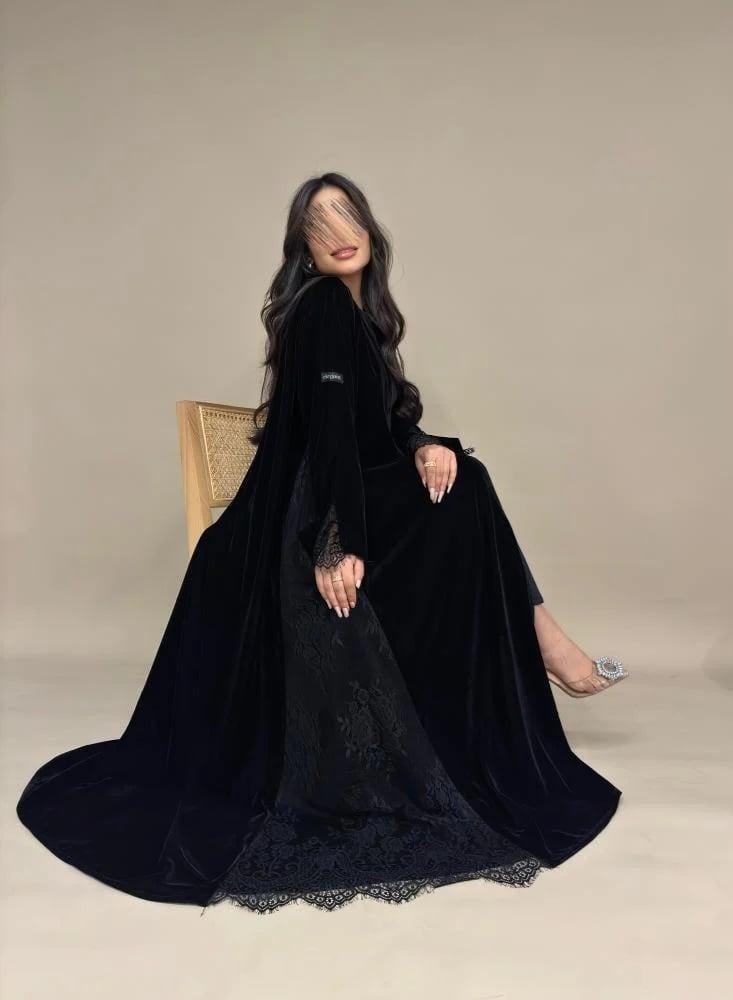 نوع القماش: مخمل كوري + دانتيل فرنسي.