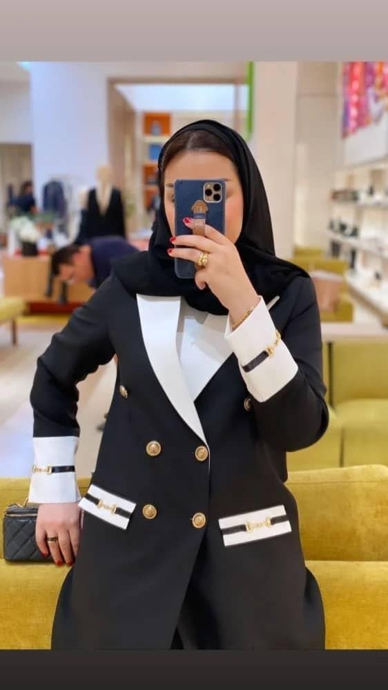 كريب اسود مع الياقه الاوف وايت والاكمام