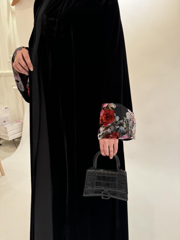نوع القماش: مخمل اسود + الاكمام شيفون مخمل